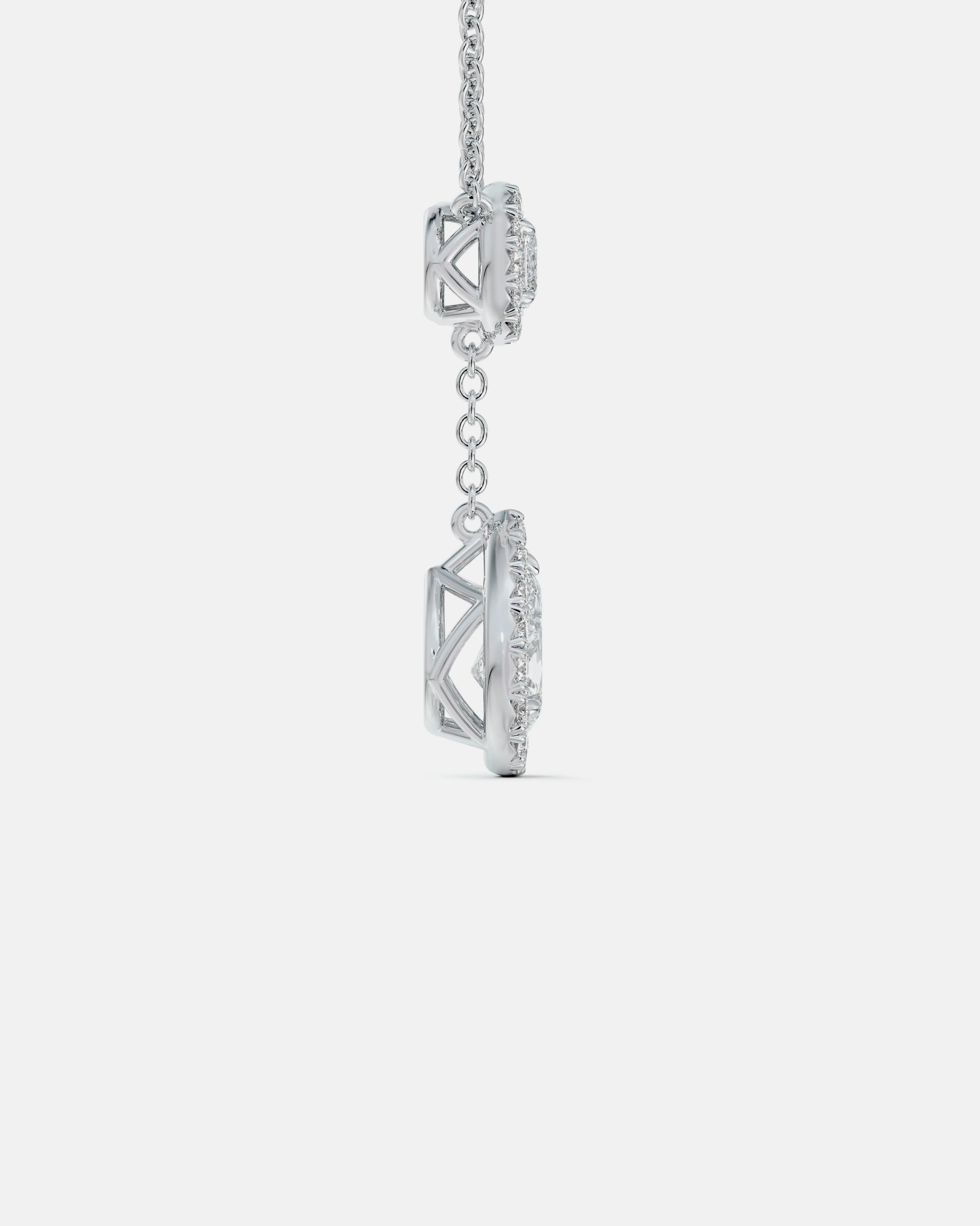 This stunning necklace features a luxurious, eye-catching lariat-style drop design in gleaming white metal. The centerpiece is a magnificent pear-shaped diamond, surrounded by a brilliant halo of smaller diamonds, creating an impressive size and sparkle.